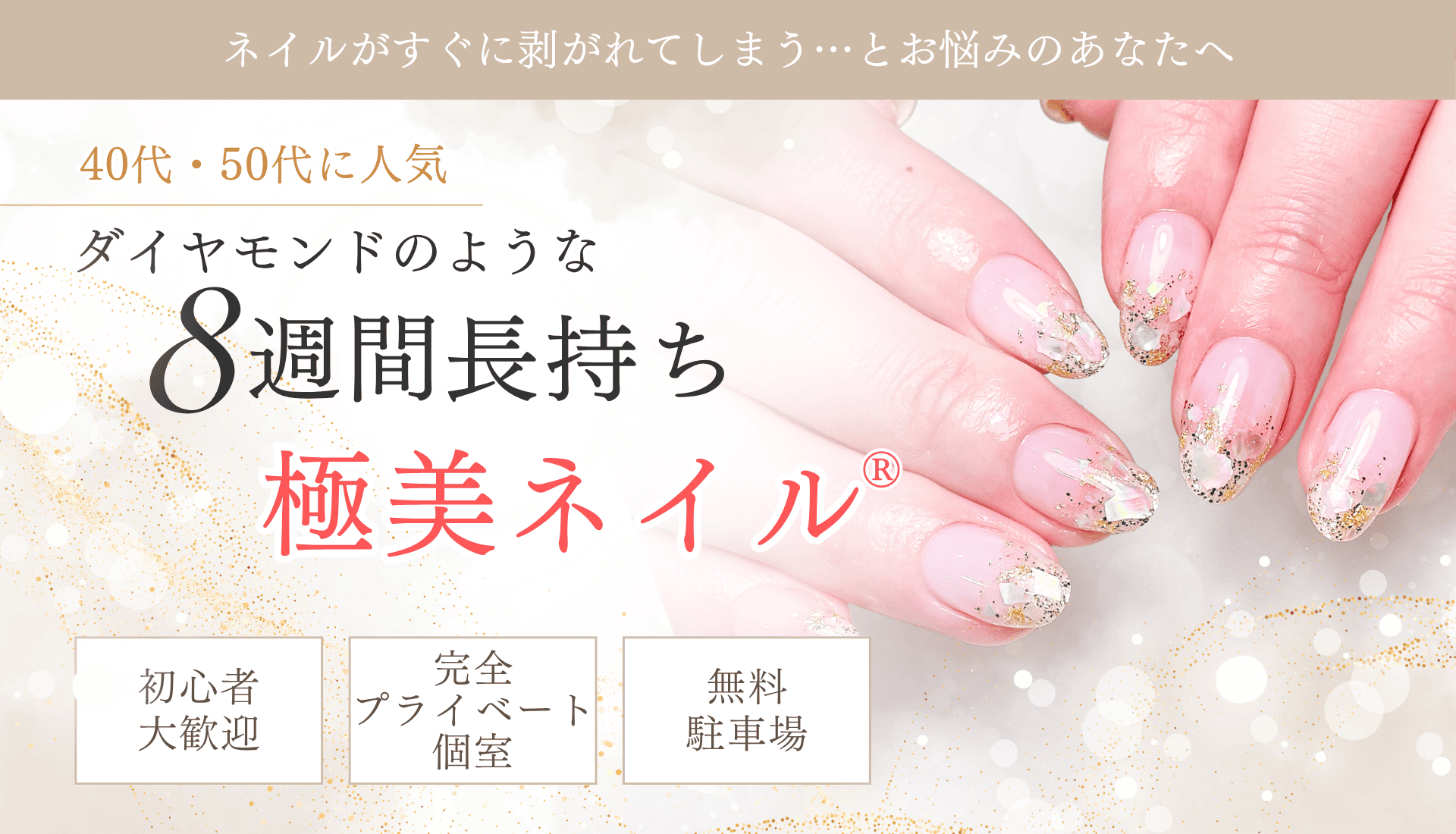浮きにくく長持ち、そして自爪にやさしい設計のため、特に40代・50代の手元との相性は抜群。